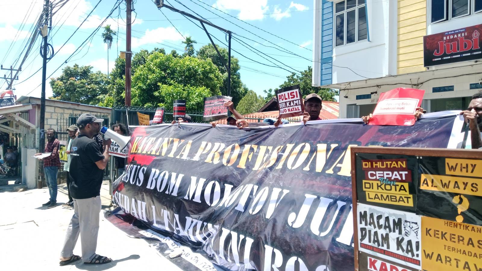 Ketua Asosiasi Wartawan Papua (AWP), Elisa Sekenyap, dalam orasinya dengan tegas mempertanyakan komitmen aparat kepolisian dalam mengusut kasus itu.