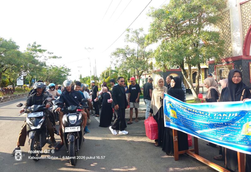 Alumni Darul Fikri dan OSIS SMA Almadina Nabire Berbagi 200 Takjil di Masjid Agung Al-Falah
