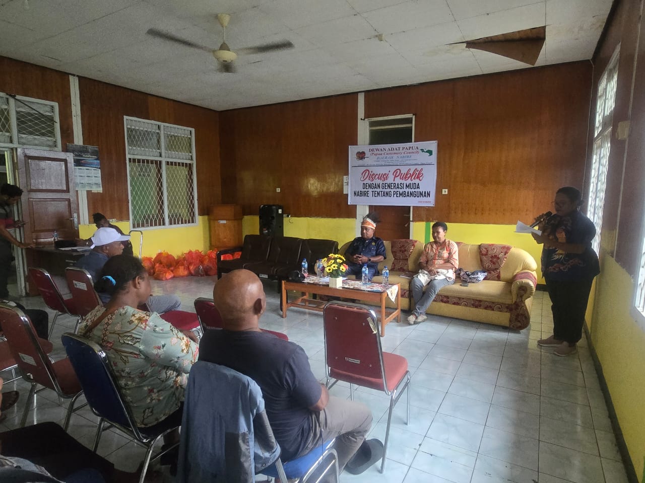 Nabire papedanews.com , Dewan Adat Papua menggelar Diskusi Publik bersama generasi muda Nabire di Aula Kantor Kesbangpol Kabupaten Nabire, Jalan Pepera, Kelurahan Karang Mulia, Distrik Nabire, Papua Tengah. Kegiatan yang berlangsung sejak pukul 16.07 hingga 18.03 WIT ini mengusung tema “Mendorong Partisipasi Aktif Generasi Muda dalam Pembangunan Nasional dengan Mindset Produktif.” 23 Oktober 2025