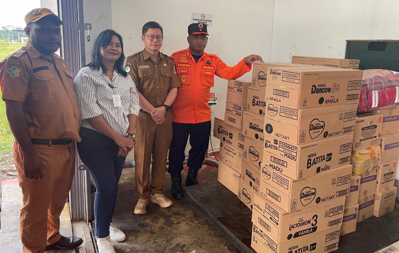 “Bantuan yang dikirimkan sebanyak kurang lebih 2 ton terdiri dari bahan makanan seperti beras, susu, mi instan, gula, serta obat-obatan dan fasilitas kesehatan dari Dinas Kesehatan. Bantuan ini juga didampingi oleh tim gabungan dari ketiga dinas terkait serta Direktur RSUD Intan Jaya,” kata Victor Fun.
