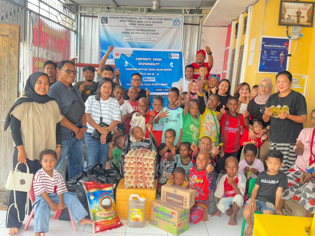 Nabire, Papua Tengah Papedanews.com Memperingati Hari Ulang Tahun Hasjrat MultiFinance, keluarga besar Hasjrat Multifinance Nabire melaksanakan kegiatan penuh makna berupa Makan Bersama dan Bakti Sosial (Baksos) pembagian paket sembako. Kegiatan ini digelar di Yayasan Difabel, Yatim Piatu, dan Anak Putus Sekolah Nabire sebagai wujud kepedulian serta kasih berbagi kepada sesama, khususnya bagi anak-anak yang membutuhkan perhatian lebih. Minggu 7 September 2025