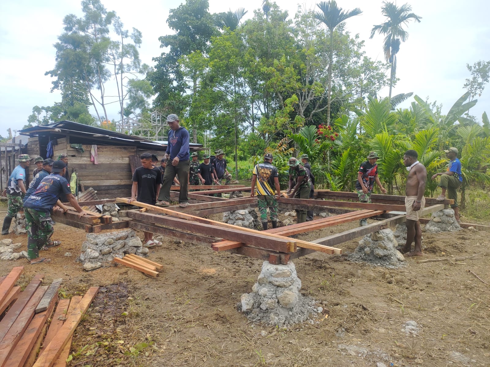 Melalui Korem 173 Praja Vira Braja (PVB), TNI memberikan bantuan rumah dan sumur bor air bersih kepada Kepala Suku Dani di Kampung Kimi, Distrik Teluk Kimi, Kabupaten Nabire, Provinsi Papua Tengah.