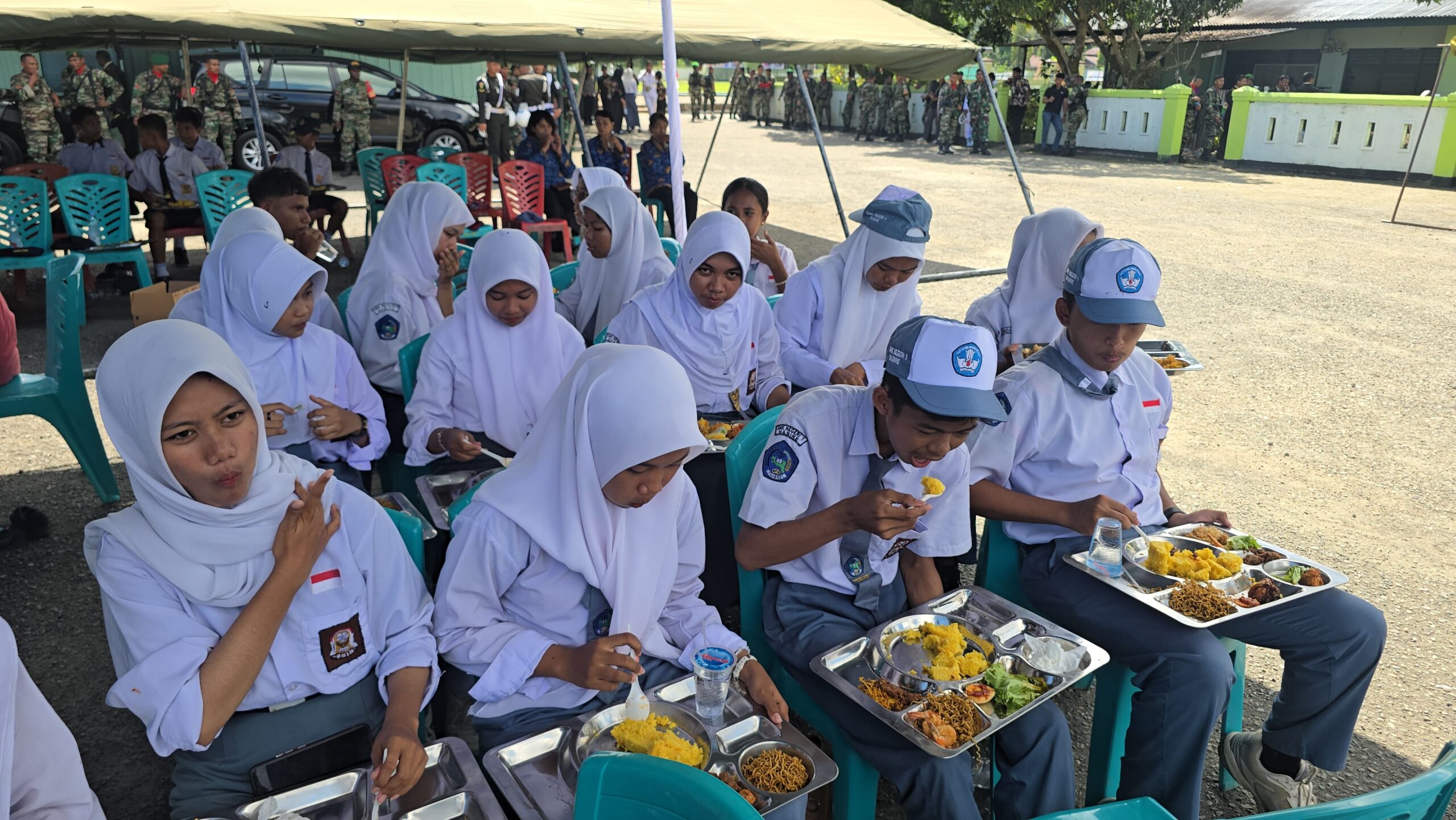 Korem 173/PVB juga melaksanakan kegiatan pemberian makanan bergizi gratis kepada masyarakat, khususnya bagi anak-anak dan lansia.