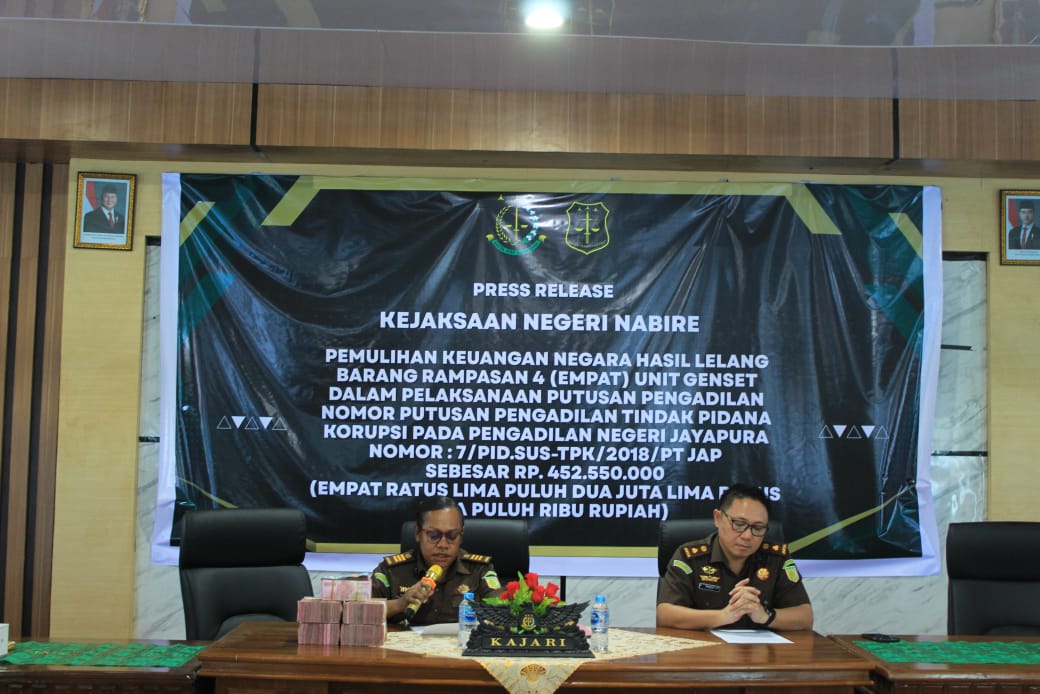 Kepala Kejaksaan Negeri Nabire, Dr. Jusak Elkana Ayomi, S.H., M.H., menegaskan bahwa langkah lelang tersebut merupakan kelanjutan dari Putusan Pengadilan Tindak Pidana Korupsi Pengadilan Negeri Jayapura Nomor 7/Pid.Sus-TPK/2018/PT JPR. Selain itu, ia menjelaskan bahwa setiap putusan yang menyangkut penyitaan barang rampasan harus segera dieksekusi agar tidak menghambat upaya pemulihan kerugian negara.