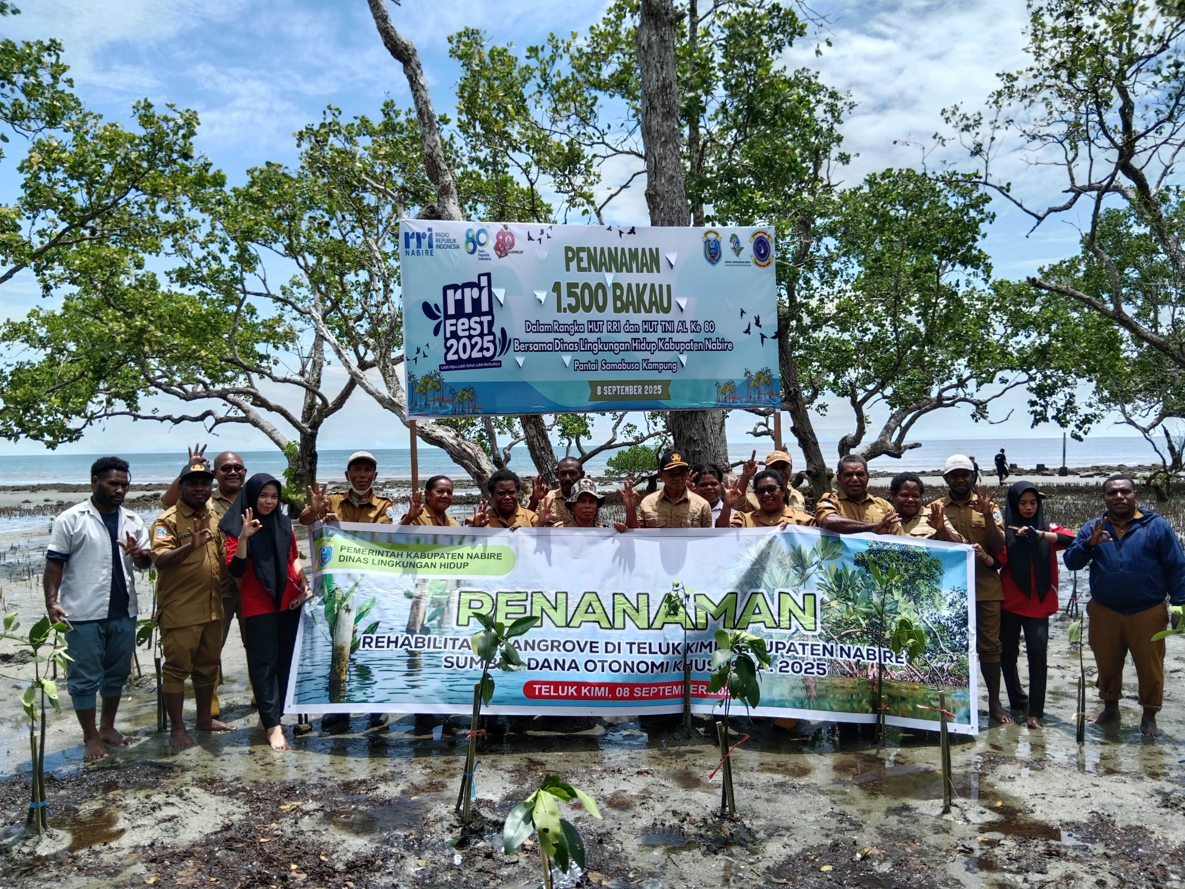 Tak hanya pejabat dan instansi, tampak pula anggota Dharma Wanita RRI, mahasiswa, komunitas pecinta lingkungan, hingga warga kampung setempat yang turut serta. Mereka bahu-membahu, menanam harapan agar Nabire tetap hijau dan lautnya terjaga.