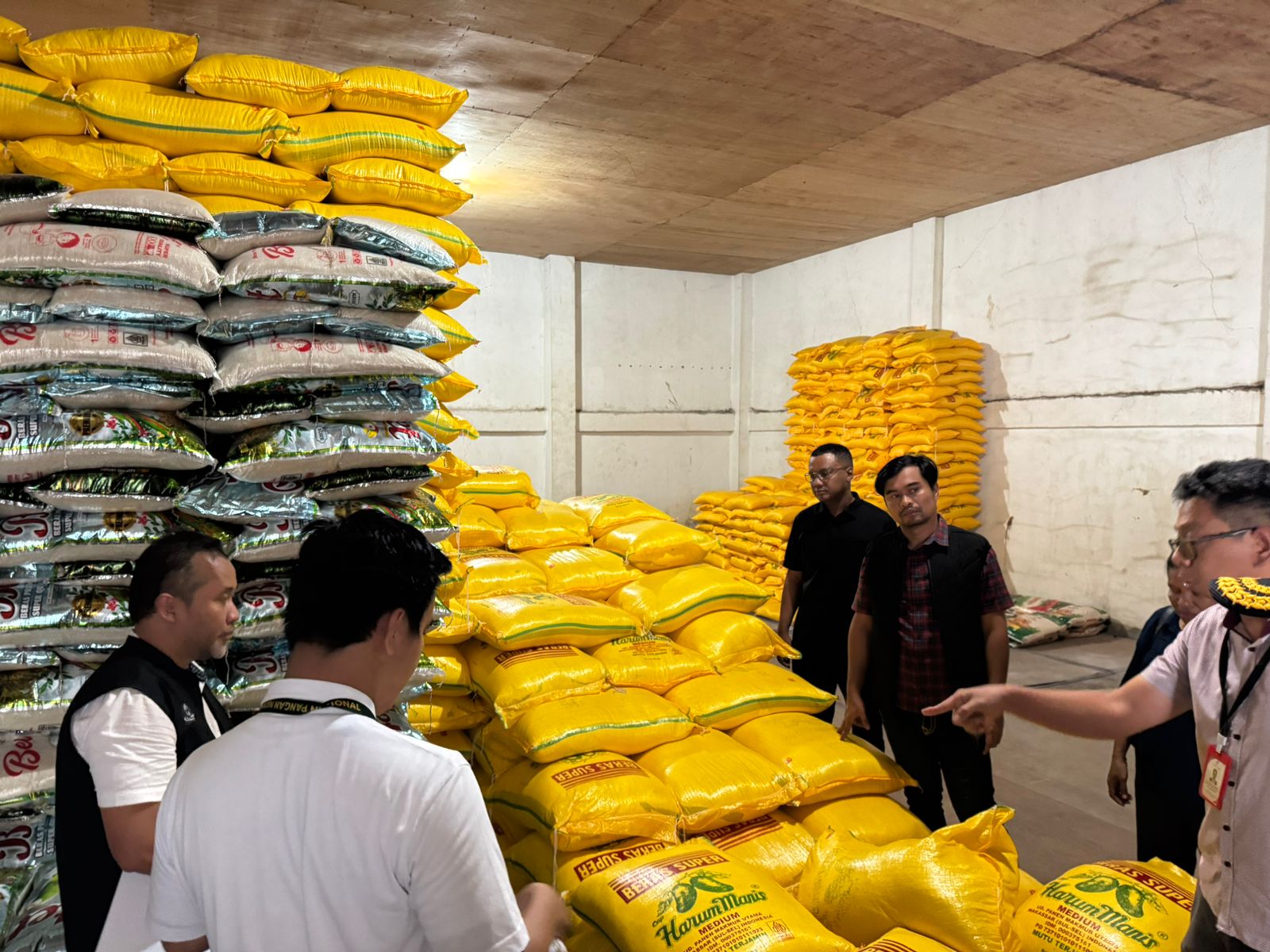 Tidak hanya di pasar, tim juga menyambangi gudang penyimpanan bahan pangan untuk memastikan ketersediaan stok. Pada pukul 11.00 WIT, pengecekan dilakukan di Gudang CV Prima, kemudian dilanjutkan pada pukul 14.00 WIT di Gudang Inti Jaya.